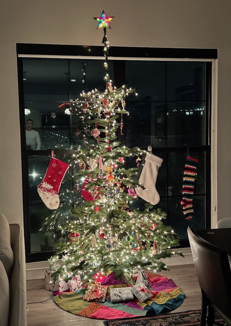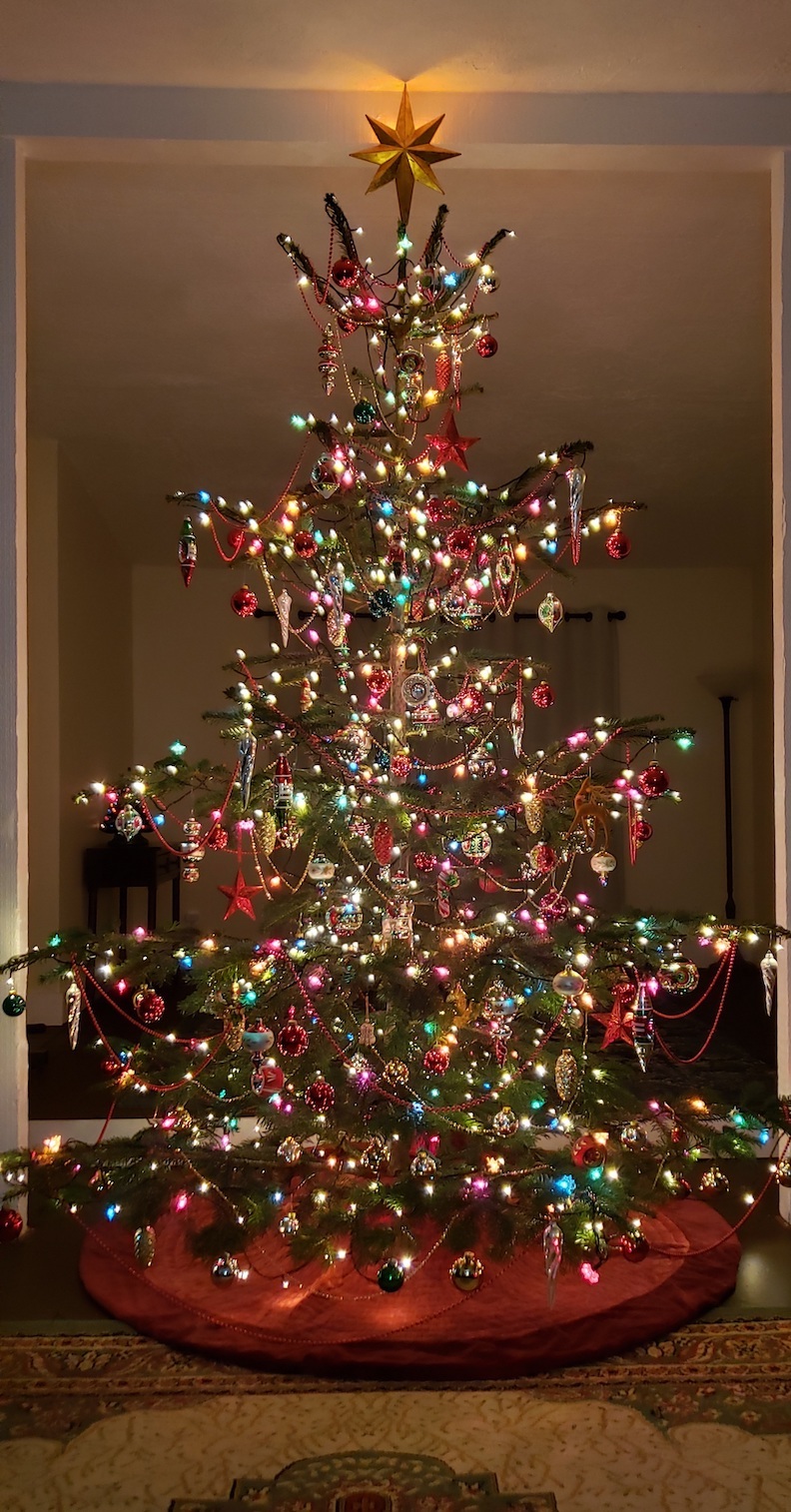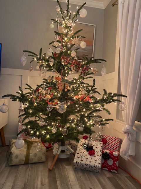 We love this tree!It’s decorated in a minimalist way to fit in with a pandemic Christmas. We used only glass ornaments and kept them socially distant! Best wishes for a happy, healthy peaceful new year. Elaine