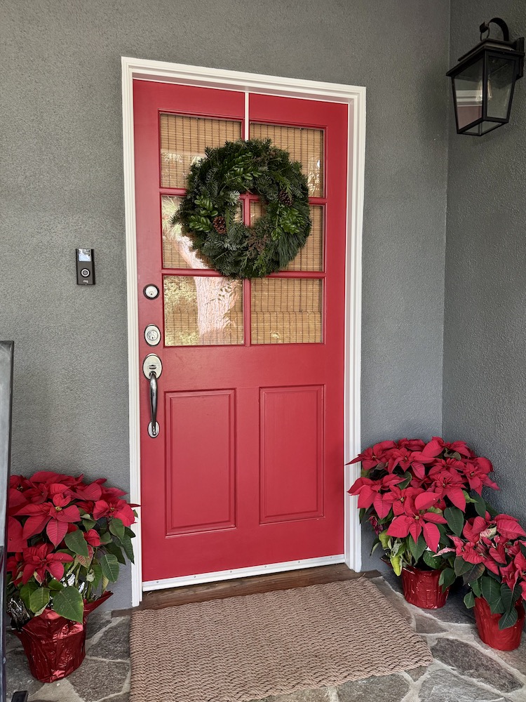 The garland is outside and still looks really good! and the wreaths are still up too!