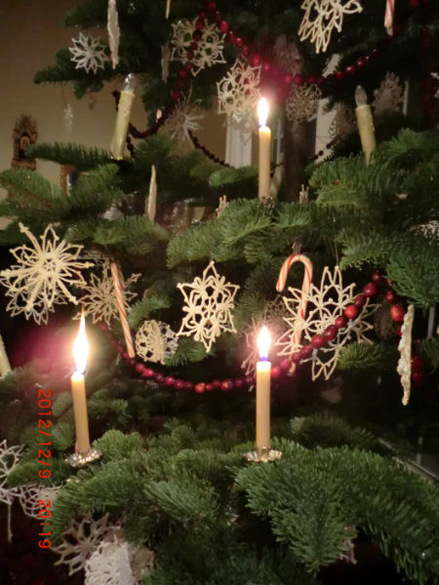 A real "Old-World" Candle lit Tree!Here you go! ... We put one single strand of amber lights in for depth and for when we do not light the candles. This year we decided to go with simple silver, glass and a few birds, much to my husband’s chagrin, who likes the whole Danish look with braided hearts, cones and flags. But that will be next time! So this year’s tree was truly perfect and we hope that you will remember it for our next order.... Oh, and the candles are on holders with a long stick with a weight on the end, unlike the German clips. The are straighter and safer that way. Have a splendid 2020! Ulla