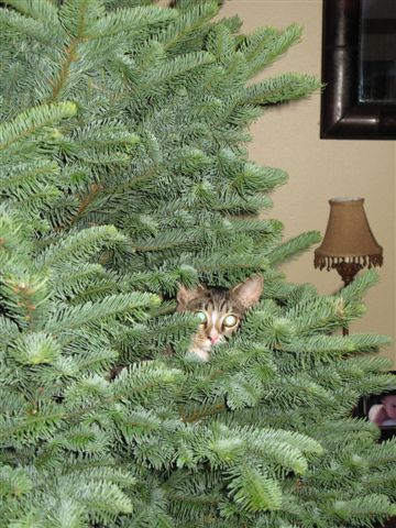 Let's just cut to the chase ----- do all your trees come with a little extra something? JUST KIDDING! Meet our Chevy, short for Chevron, which is where my husband rescued this fellow. He weighs over 7 pounds so these pics speak volumes for the sturdiness of your trees. Since this is Chevy's new most favorite napping spot, I'm open to suggestions on how to decorate around him! Y'all take good care in all of your business of the Christmas season! Gretchen (Alabama) P.S. Of course the tree is beautiful and smells oh-so-good!