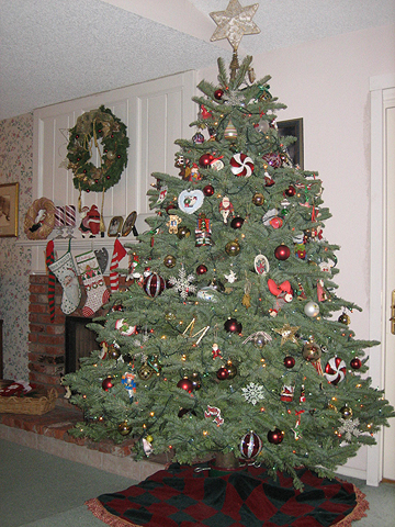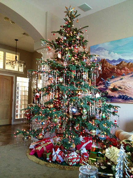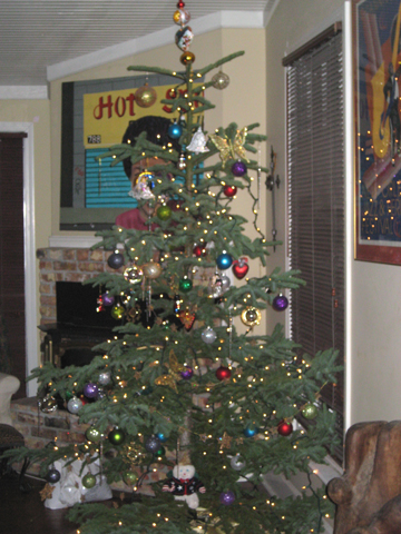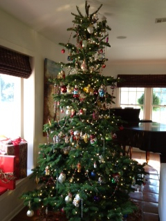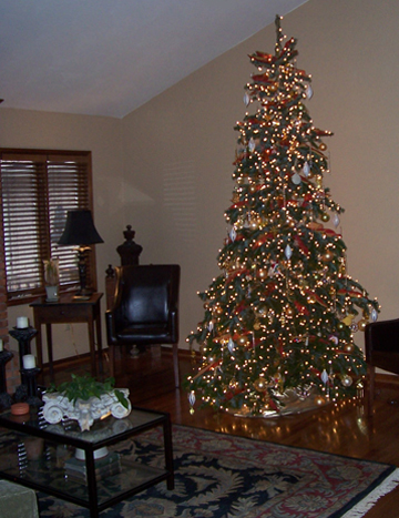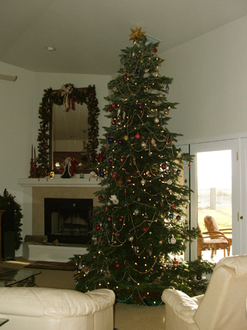 We received the Christmas tree right on schedule! Luckily I had house guests that I commandeered to help decorate. It is beautiful and it is huge! So huge in fact we ended up having to trim the top a tad bit so that I'd have room for the star. Felt a little like Beverly D'Angelo in Christmas Vacation ;~) 'Clark, do you think there's room for the angel?' Anyway, as promised, here's a picture of your beautiful work of art, all decorated, thoroughly watered, and we're very pleased. Thank you so much for picking out a perfect tree for us. Merry Christmas! Deb (Arizona)